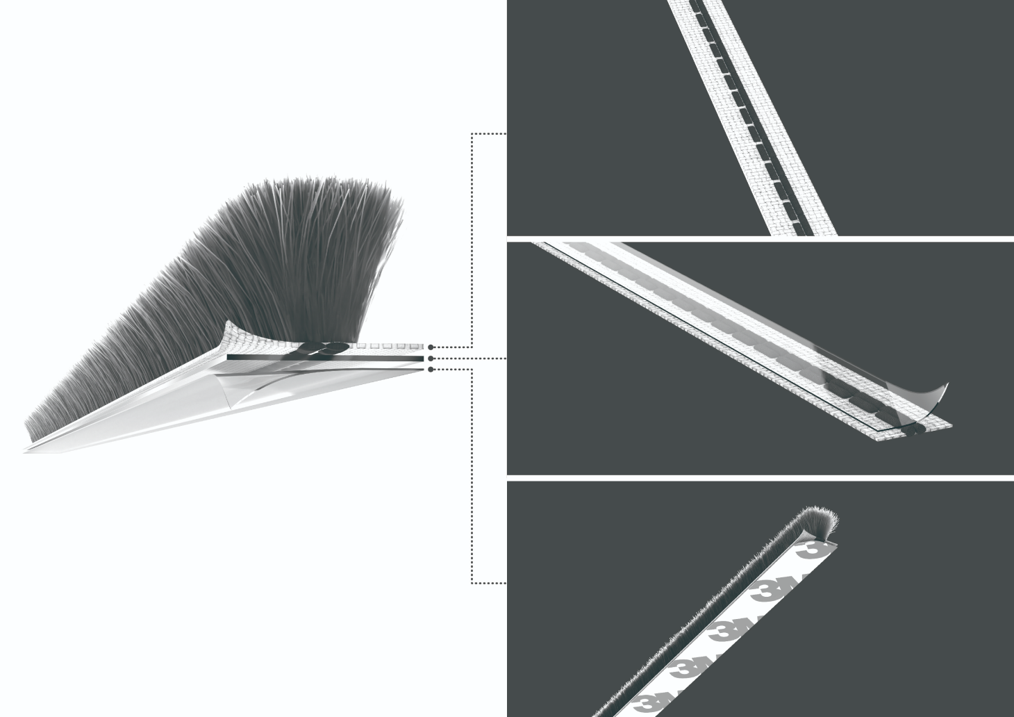 베이스에 자사 특유의 기술을 가미해 양면테이프를 부착한 제품으로서 어떠한 틈새에도 간편하게 부착가능하며, 강력한 접착력과 탈착 후에도 자국이 남지 않는 3M양면테이프를 사용합니다. 봄,여름에는 벌레와 미세먼지를 막는 용도로 겨울에는 단열제로 사용하기에 탁월합니다. 새롭게 샤시 시공을 하지 않아도 되기 때문에 경제적이고 소비자가 대형마트나 샤시부속상사등에서 '틈새 모헤어'라는 상품으로 삼오 테이프 모헤어를 손쉽게 구매할 수 있습니다.